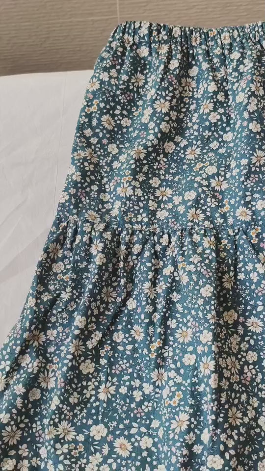 Dark Blue Green Flowers Handmade Skirt